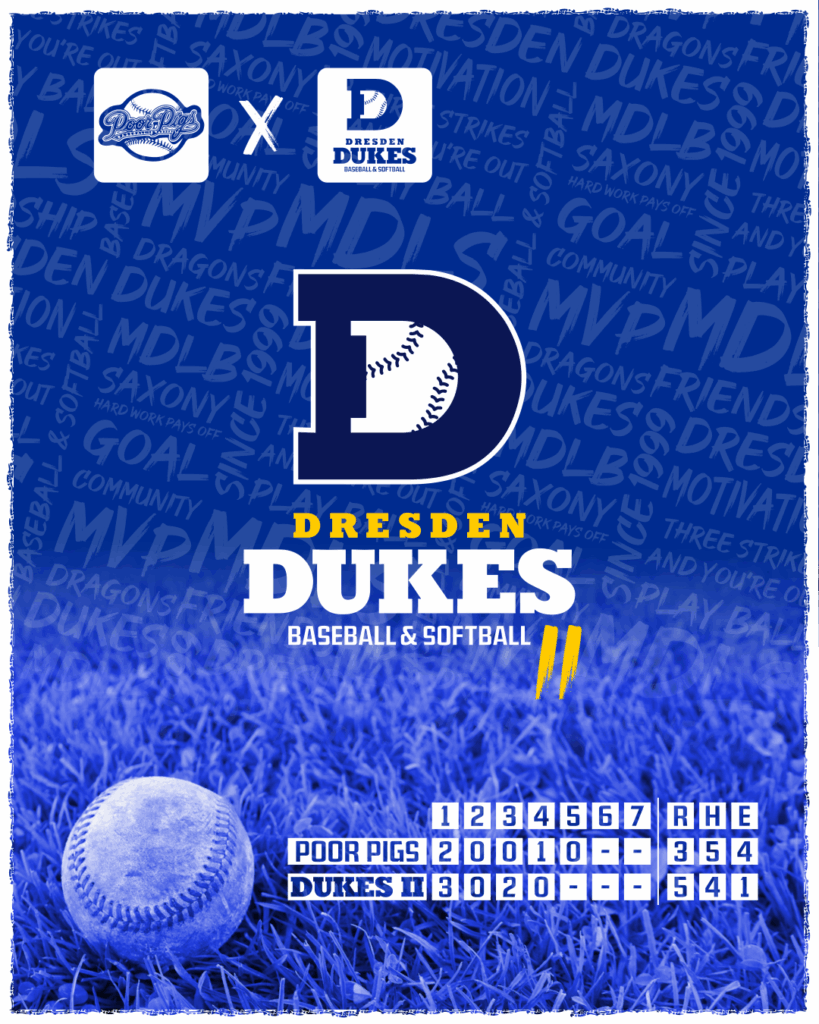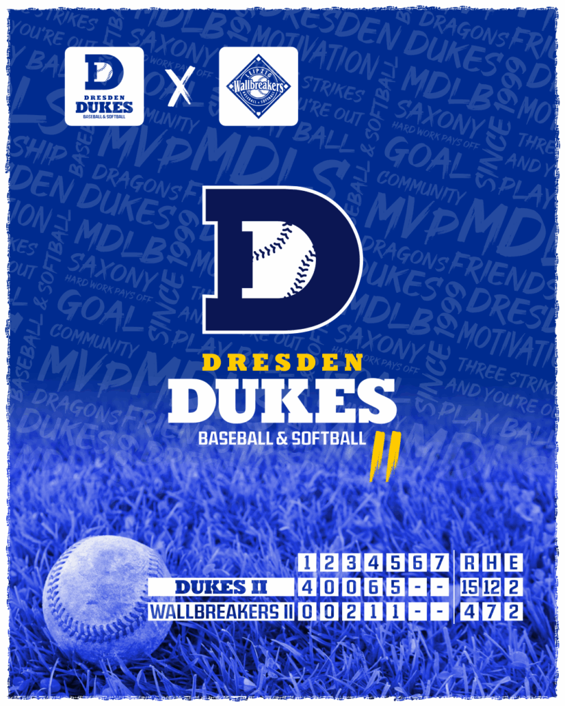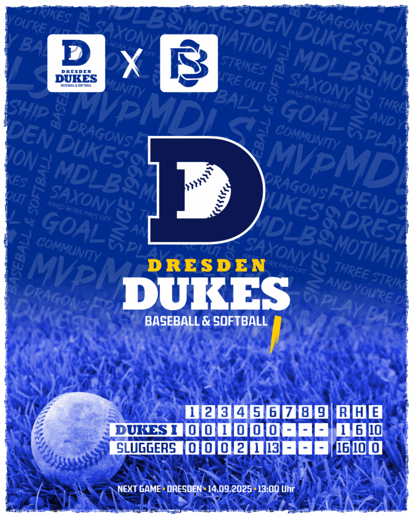 Im Spiel gegen die Magdeburg Poor Pigs war der Gewinn des direkten Vergleichs für beide Teams das Ziel. Dem entsprechend umkämpft war dann auch diese Begegnung. Auf zwei Runs der Gastgeber fanden die Dukes 2 im Heimrecht mit drei eigenen Punkten die richtige Antwort. In der Folge beherrschten die Abwehrreihen um Pitcher Jöde auf der einen und L. Arias auf unserer Seite das Geschehen. Erst unten im dritten Abschnitt schlugen wir bei zwei Outs wieder zu. Aus drei Singles hintereinander resultierten zwei Runs und verschafften Closer Perez für die letzten beiden Innings ein kleines Polster. Die Magdeburger konnte ihm sogar nach einem Hit und einem späteren Balk ein Pünktchen abringen. Oben im Fünften wurden aber ihre Hoffnungen auf eine Rallye mit drei schnellen Outs begraben, von denen eines dem sehenswerten Catch des eingewechselten Right Fielders M. Lindner zu verdanken war. Am Ende stand ein knapper, jedoch verdienter 5:3-Sieg.